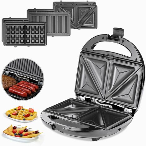 ✅ 3 placas premium antiadherentes: sándwich, waffles y grill, para preparaciones gourmet en casa.